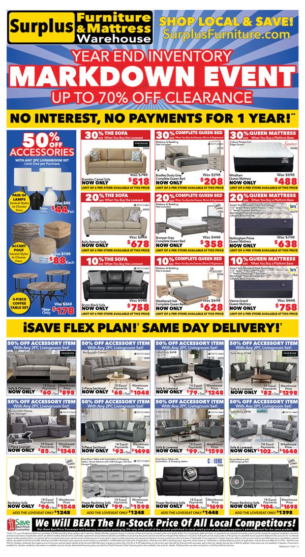 This Surplus Furniture And Mattress Warehouse flyer has 110 views