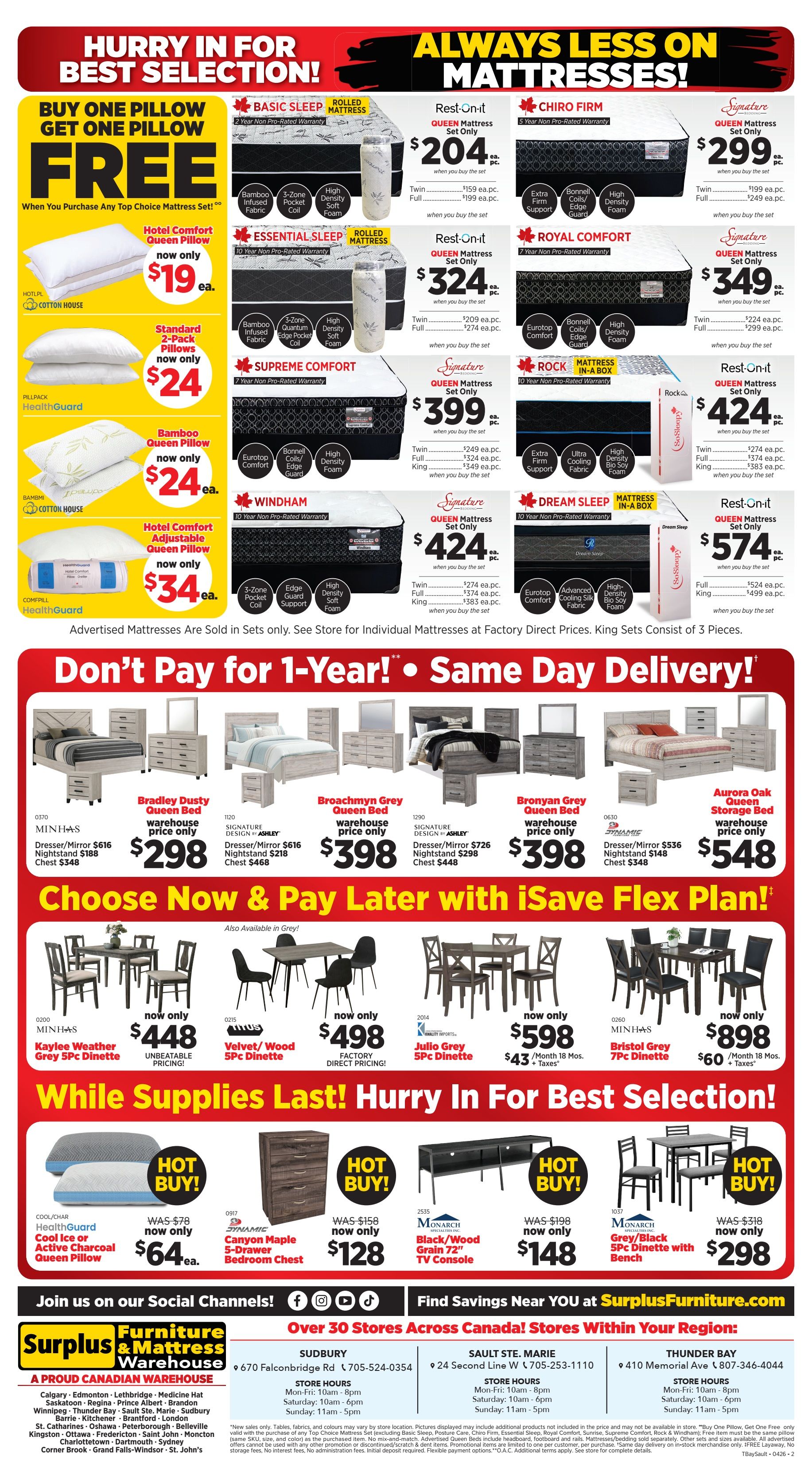 Surplus Furniture & Mattress Warehouse (Thunder Bay, Sault Ste Marie) Flyer April 6 to 19